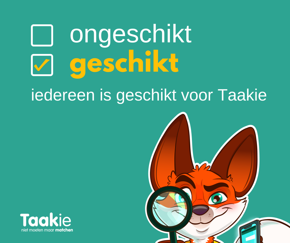 Taakie helpt ons jou te matchen aan taken die écht bij je passen. Of je nu goed kunt organiseren, bakken, klussen of gewoon graag helpt – alles telt.